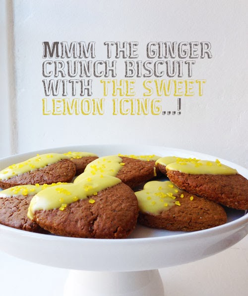 Please don't be deterred if, like my partner, you are not a fan of ginger biscuits because the flavour turns out to be very subtle and compliments the sweet lemon icing perfectly! The baking session also gave me an opportunity to sport my recently purchased vintage 1/3 pint milk bottle from Bloomsbury & Co and the fresh white cake stand (a Christmas gift from my amazing folks - thanks Mum & Dad!).