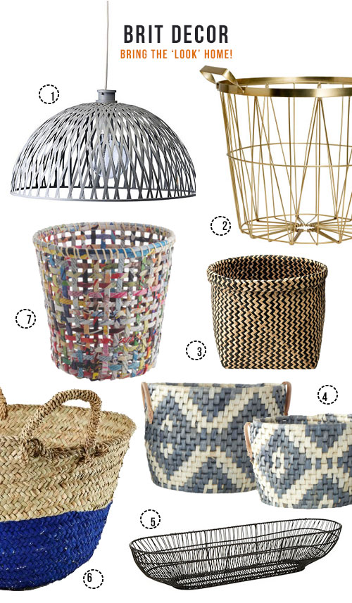 I've definitely been warming to the latest trend in basket accessories, from wire frame to bronze, recycled paper, to traditional seagrass, there's something for all of us. Sticking with H&M, I love the luxe-look of the bronze basket (no.2 below) for those glamorous nights in and a sparkle of light for the darker days ahead. Equally dazzling is the traditional 'Magga' shopping basket from The Conran Shop (no.6 below) - woven from beautifully rustic seagrass but with a contemporary dip in cobalt blue - a pleasant reminder of a Greek island holiday perhaps...?