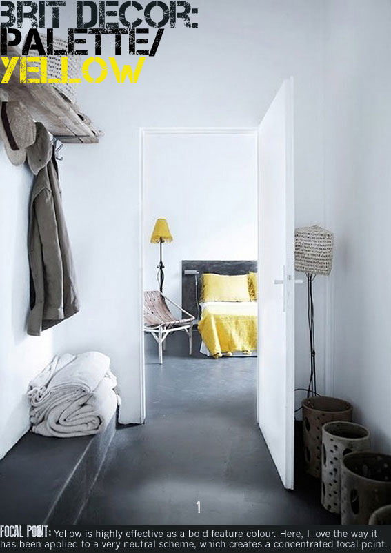 I tend to view yellow as a very concentrated bold colour but it can also be muted into paler pastel tones for a softer effect. I have selected a collection of inspirational images (above) which shows how you too can create the 'wow' factor by introducing this fab colour to your home.