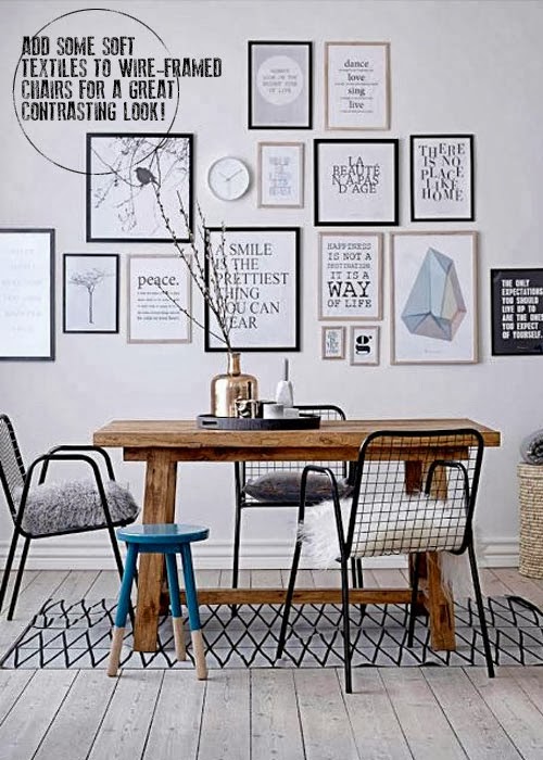 These modern classics look their best against a neutral backdrop and I love how light can create added detail by casting silhouette shadows like muted line drawings. These pieces are versatile too, try adding some textiles to the mix for a contrasting softer look. Also see how the wire frame ceiling pendant above works perfectly in a modern rustic setting so don't be afraid to experiment with different styles.