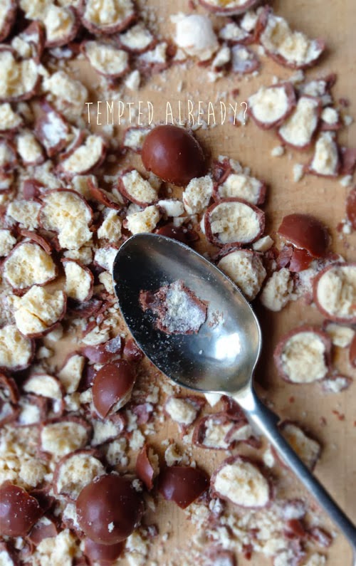 Okay I know all of this sweet baking is becoming a bit of habit but how could I resist making these Malteaser crunch biscuits!? They are so easy to make and with minimal ingredients, plus I had the added bonus of relieving some stress using a vintage spoon to crush the Mateasers ready for the biscuit topping.