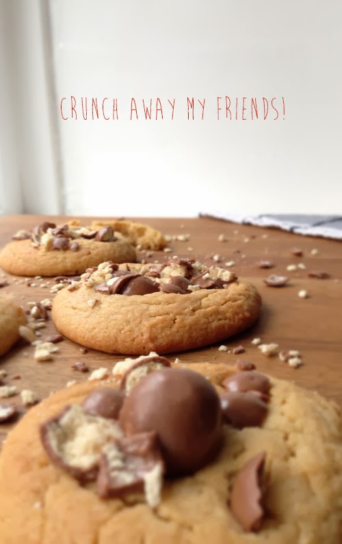 Okay I know all of this sweet baking is becoming a bit of habit but how could I resist making these Malteaser crunch biscuits!? They are so easy to make and with minimal ingredients, plus I had the added bonus of relieving some stress using a vintage spoon to crush the Mateasers ready for the biscuit topping.