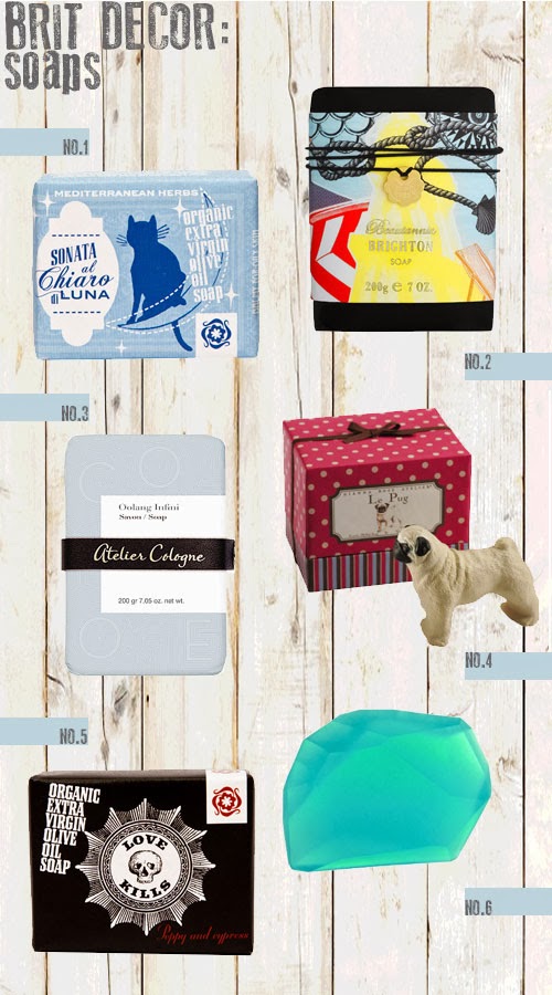 Perhaps looking at this selection of stylish soaps today is rather apt considering the torrential rain that is currently beating against my window but I hope you are inspired by some of these treats. (Santa, if you happen to be reading today's Brit Decor, I'll have the 'Love Kills' soap please).