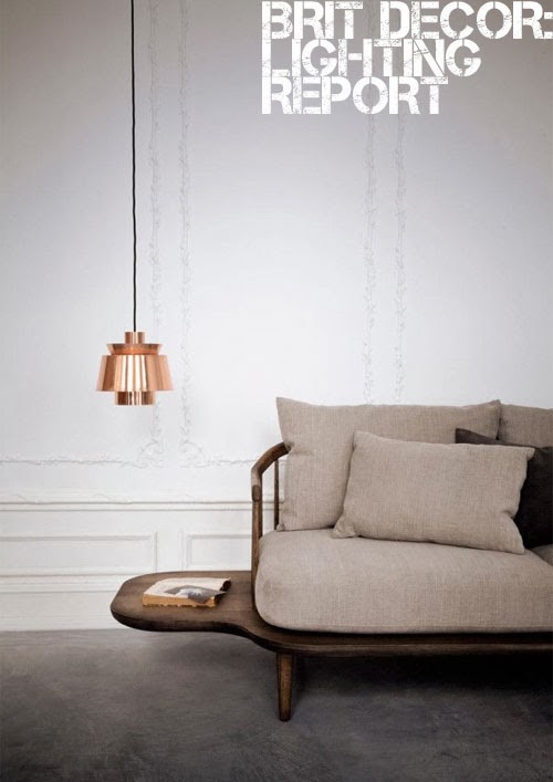 The monochromatic look continues in the strikingly slick kitchen design 'above' which is accentuated by the simple wall light as it creates a silhouette effect against the brilliant white wall in image 4. To replicate this look, try this New York wall light from Bodie and Fou - the twisted arm and the pairing of black and copper colours is stunning. The beautiful copper pendant lights in image 5 bring an instant luxe-look to their settings and have that oh-so popular distinctive mid-twentieth century style. For a truly luxurious feel, try grouping together several pendant lights. This Tom Dixon copper pendant from Heals has all the style and glamour of an early James Bond movie! I adore copper objects around the house at this time of year, it's such a warm coloured material and the reflective qualities serve to bounce light around a room like copper flames.