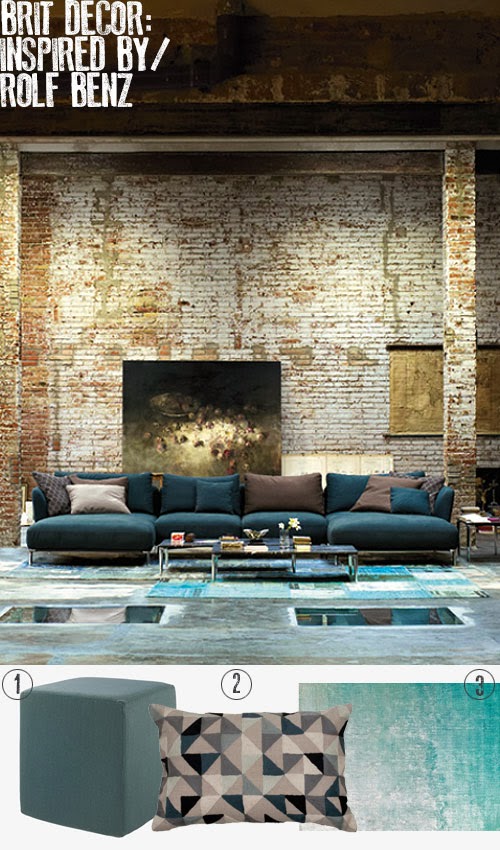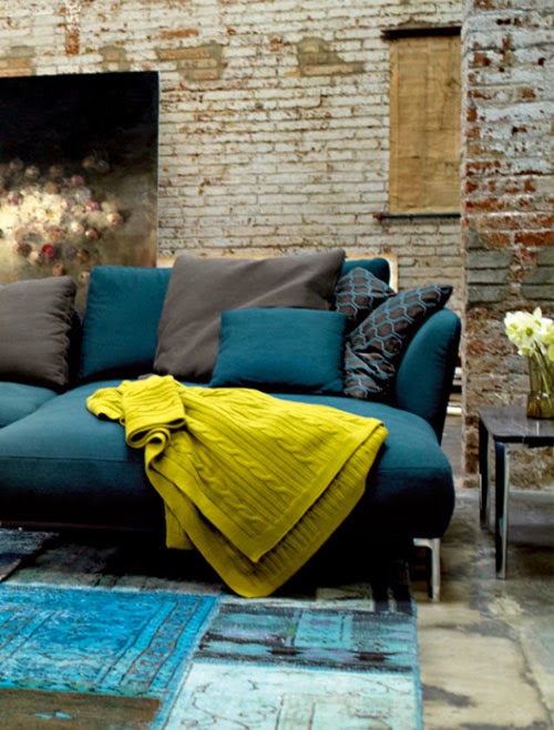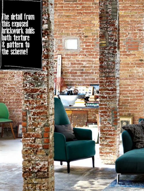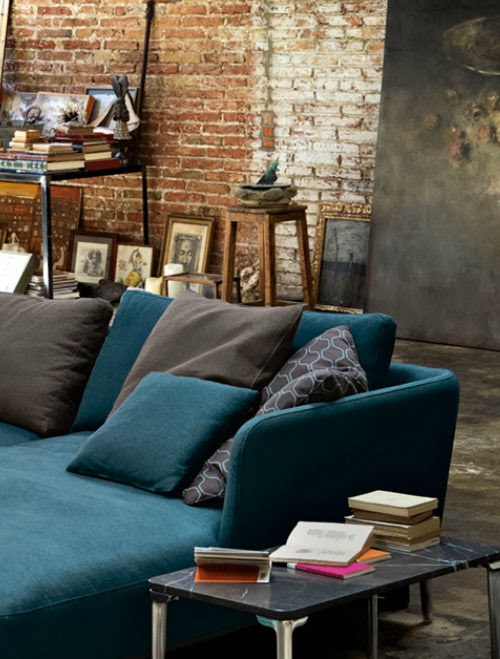 Industrial chic continues to rock my world and this exciting interior trend has inspired many new and innovative collections, not least of all the Scala modular sofa range from designer, Rolf Benz. I wanted to include this setting on Brit Decor because it has all the detail and richness of a Renaissance painting  with a plethora of pattern, colour and texture - wow what a combo! Whilst there are a growing number a stunning graphic brickwork wallpapers available, it's hard to beat the raw texture and detailing created by the exposed brickwork, which is also reminiscent of the reddening Autumn leaves, don't you think?