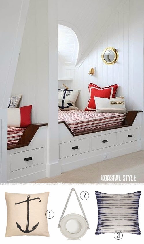 If you are thinking about going one step further, the Coastal Style setting below actually turns the window space into a charming day bed with added built-in storage to maximise the functionality of this clever design. Don't you just love the porthole hanging mirror from French Connection home?