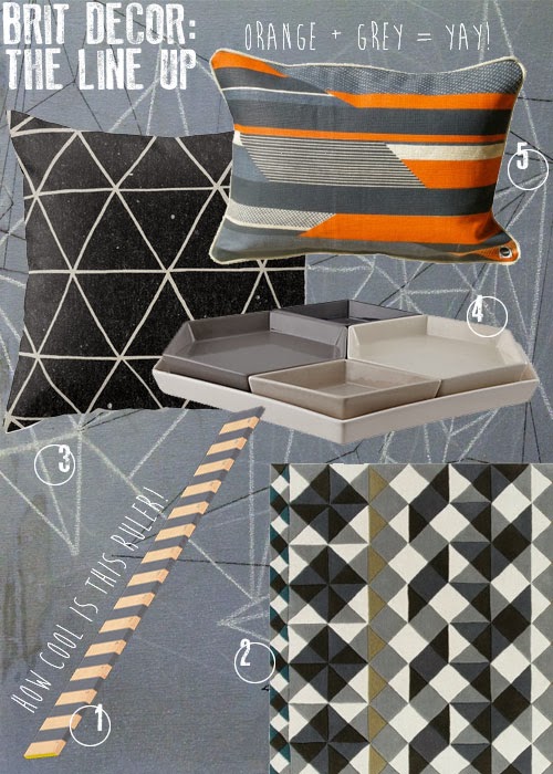 Below I have selected some perfect partnering items which really rock this straight-edged look. I love the effect of the vivacious orange against the graphite greys of the Tamasyn Gambell cushion from Nest - the cream piping really finishes of the design doesn't it!? And I love the subtle glossy palette of the Hexagonal sorting tray from John Lewis - ideal for serving those Christmas nibbles to guests. If I was back at School right now, I would definitely be wanting the Hay wooden ruler from the 'too cool for School' Darkroom.
