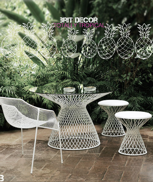 Below is a selection of accessories fit for our tropical setting. I absolutely love the handmade look of Anthropologie's 'Grasslands' butter dish (no.1) with its freehand patterns. Then there's the graphic leafy 'Green Elm' prints adorning these cute little planters from Liberty. For sheer vibrancy, why not throw a colour bomb at your tropical scheme? The abundance of greenery means the palette can well afford some bold colour additions like the hot detailing of Habitat's 'Bam' bamboo bowl and this incredible 'Splash' print platter from Liberty.