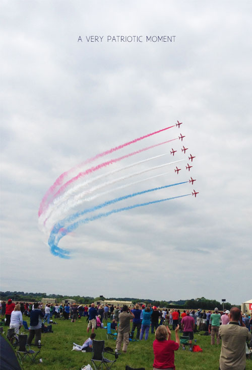 I can only describe the deafening roar of the fighter jets that followed, as they sliced their way through the sky overhead, as totally awesome. Perhaps predictably, the absolute highlight of the show (strawberry ice cream aside) had to be the Red Arrows with their supreme mid-air wizardry and iconic plumes of red white and blue smoke trailing behind them like colourful ribbons. Watching these guys actually gave me goose bumps in what was a very patriotic moment.