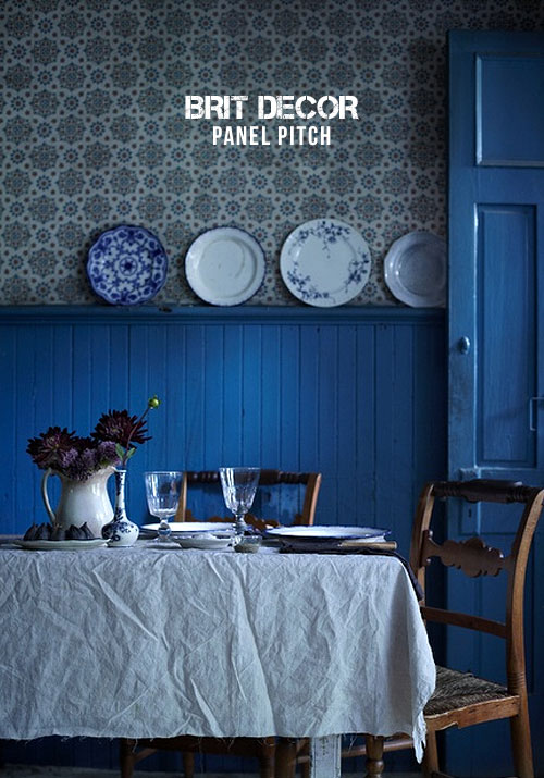 I love how the owners of this quintessential country kitchen (in image no.1) have updated the classic panelling with a breathtaking deep cobalt blue, which sets the theme for the entire room with elements of the cobalt echoed in a pattern-fest of blues.