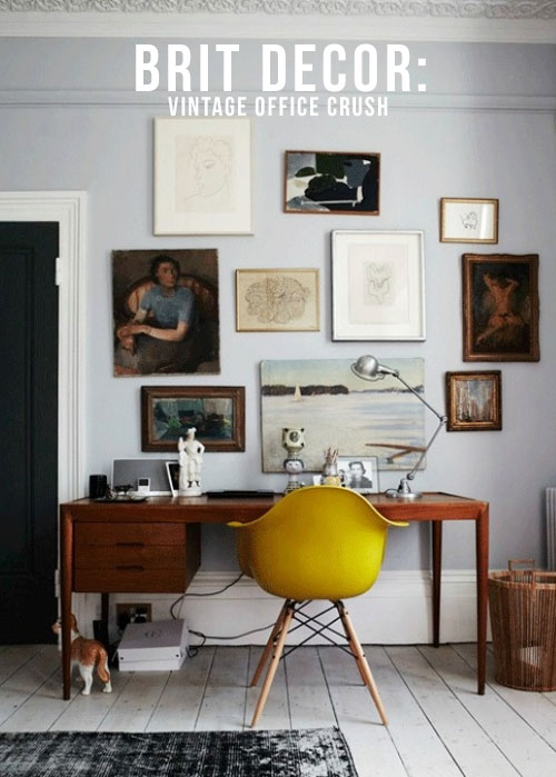 Today's post focuses on how to bring the vintage look home to create your very own workspace. I absolutely adore how the desk in the first image (above) takes centre stage and is at the heart of this living room. The warm grey wall colouring works in perfect tandem with the rich wood grain of the desk to create an incredibly subtle warming effect. This is further accentuated by the addition of the mustard yellow chair. This setting is also a great example of why adding small and curious accessories to the desktop, is a fantastic way of adding instant character and key points of interest. The gallery wall achieves a similar result same but on a larger scale.