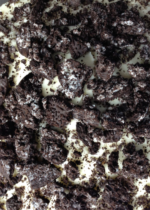 Remove the cakes from their tins once completely cooled and then assemble into a tower formation with a layer of frosting on top of each sponge - use a palette knife to smooth as you go along. Then ice the sides and top of the cake before finally crumbling the remaining cookies over the top and sides for that gorgeous light and dark contrasting colour.