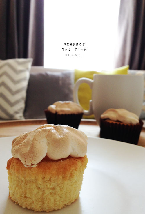 Whilst the cakes are baking in the oven quickly whisk together the sugar and egg whites for the meringue (I like to add a couple of tea spoons of cream of tartar for some extra fluffiness but this is entirely optional). Once your mixture resembles fluffy peaks, add this to a piping bag and remove the cakes from the oven. Add the meringue topping to each cupcake and then return to the oven to bake for a further 10 minutes. Happy baking friends!