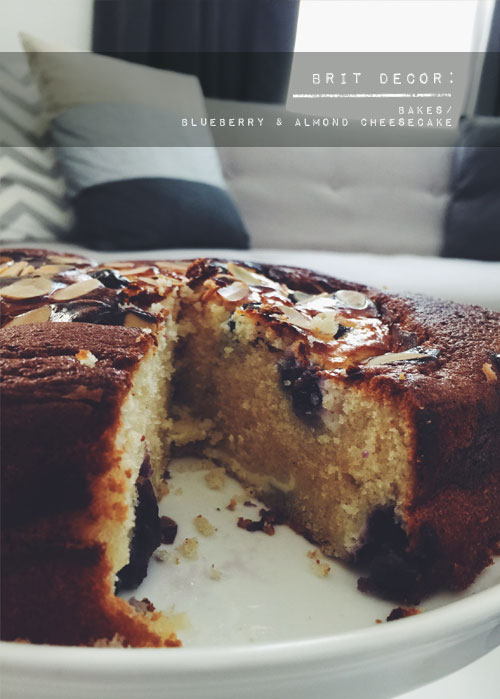 I am a huge fan of cheesecake, baked or dessert-style, fruit topped or chocolate, I love them all! So I decided to take this to another level and create a cheesecake / spongecake hybrid. This bake turned out to be a melt-in-the-mouth delight, the cheesecake mix fused perfectly with the sponge to create a moist finish which contrasted nicely with the crispy flaked almonds and juicy blueberries.