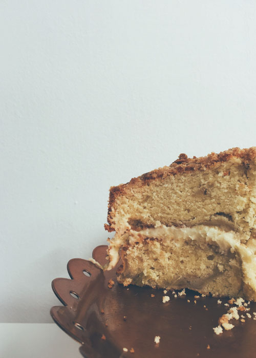 The crumble topping adds a very subtle crunch and a beautiful golden texture, whilst the juices from the stewed apple and rhubarb ensure the sponge is sweet and moist. I kept some of the cooked rhubarb to one side and added this to the buttercream icing for a playful little kick.
