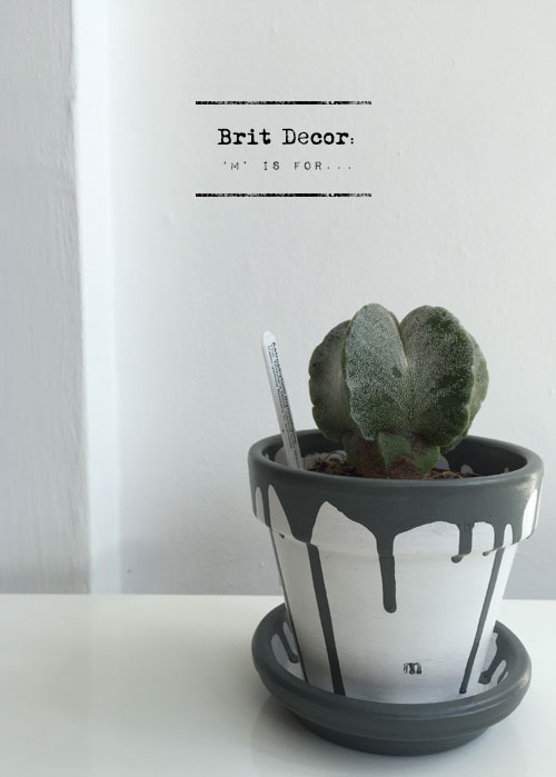 To finish off, and purely for fun, I wanted to add a tiny graphic element to this design, so I used my little letter stamping set and printed an 'M' on the side of the planter. I love the contrast between the fresh white and the dark grey, complimented perfectly by the frosted sage green colour of the cactus.