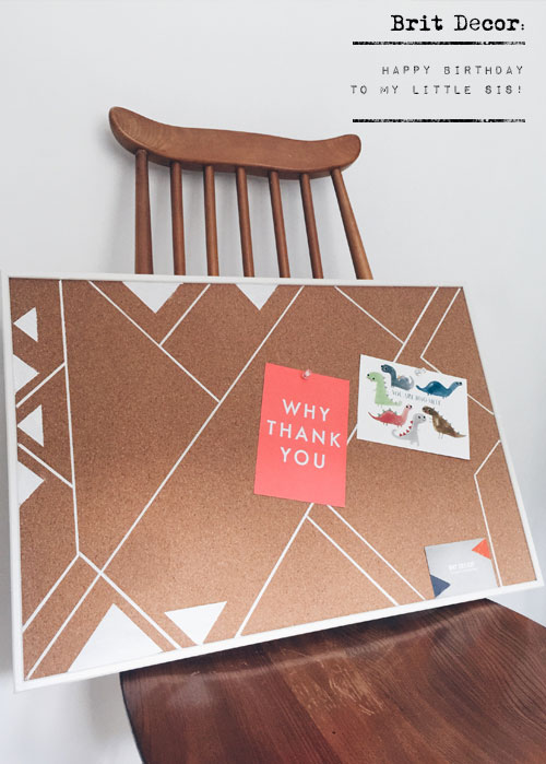 Last year whilst on a trip to Rome, I picked up a fun and rather striking cork pot stand with white geo-pattern detailing, from a Tiger store, as a little gift for my wonderful Sister. Nearly a year later this stylish cork cutie was such a hit in my Sister's home, that she really wanted a larger pin-board version to stand above her desk.