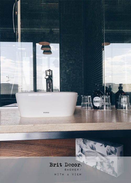 The interior design of our top floor room with its commanding views over the city was equally as striking as the panoramic view. With it's exposed concrete ceilings, complete with original chalk mark-outs, and soothing whitewashed walls, simple pendant lighting, and neutral pinstriped bedding, the entire scheme exuded industrial-chic.