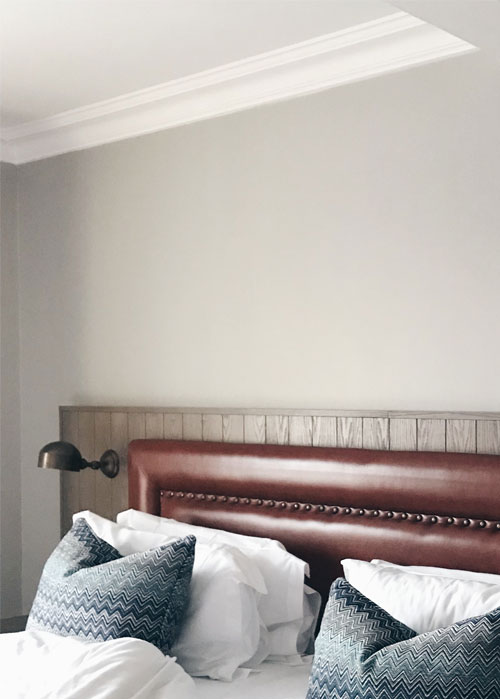 My room immediately embraced me with a calm palette of oatmeal, heavenly pastel blue, forest green and warming tan leather, adorned with on-point brass wall lights. Despite the very British setting, I couldn't help but feel, at times, as though I had been posted in a chic hotel in the heart of Stockholm or Paris, but my imagination always did run wild...