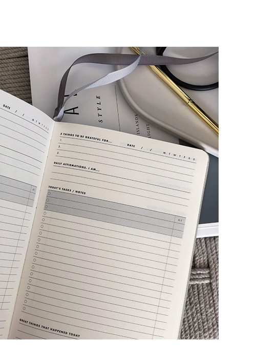 With a faux leather hardback cover the Daily Goal Setter is tactile as well as aesthetically pleasing. The pages have been designed to help us identify goals on a daily basis and structure our days in a way that helps us focus on the positives and become more mindful through daily affirmations.